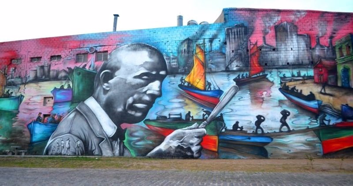 Su colega Alejandra Fenochio cuenta que los turistas ingleses de Stockport recorrieron La Boca y soñaron con embellecer su ciudad con las pinturas que veían en las paredes del barrio de las orillas del Riachuelo. “Acá hay mucha tradición muralista y gráfica. Algunos murales, como los de “Gaspa”, representando a los boquense y su historia, y otros como los de Pato, Melina, Eva y yo denunciando los procesos de expulsión, gentrificacion que sufre el barrio y homenajeando a figuras representantes de la cultura y las luchas populares”, detalla la artista.