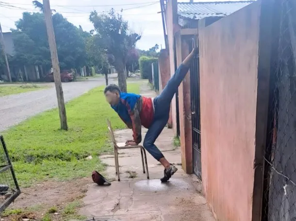 Se estima que el ladrón resbalo al intentar ingresar a causa de la lluvia. Al escuchar los gritos los vecinos dieron aviso a la Policía, la cual le acerco una silla al supuesto ladrón para aliviar el dolor.