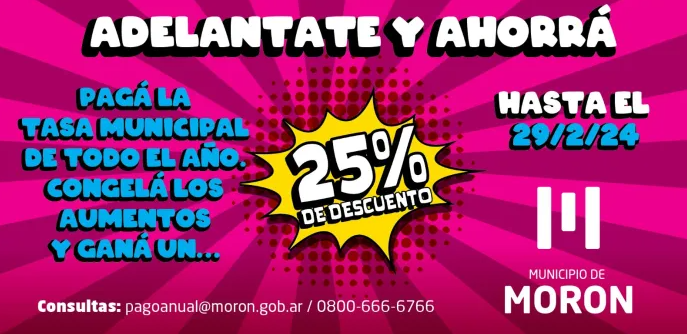 El Municipio del oeste bonaerense ofreció a sus habitantes la posibilidad de realizar el pago anual de Impuestos por Servicios Generales con un descuento del 25% sobre el valor total. Para recibir este tipo de bonificaciones se deberá costear antes del 29 de febrero de 2024.